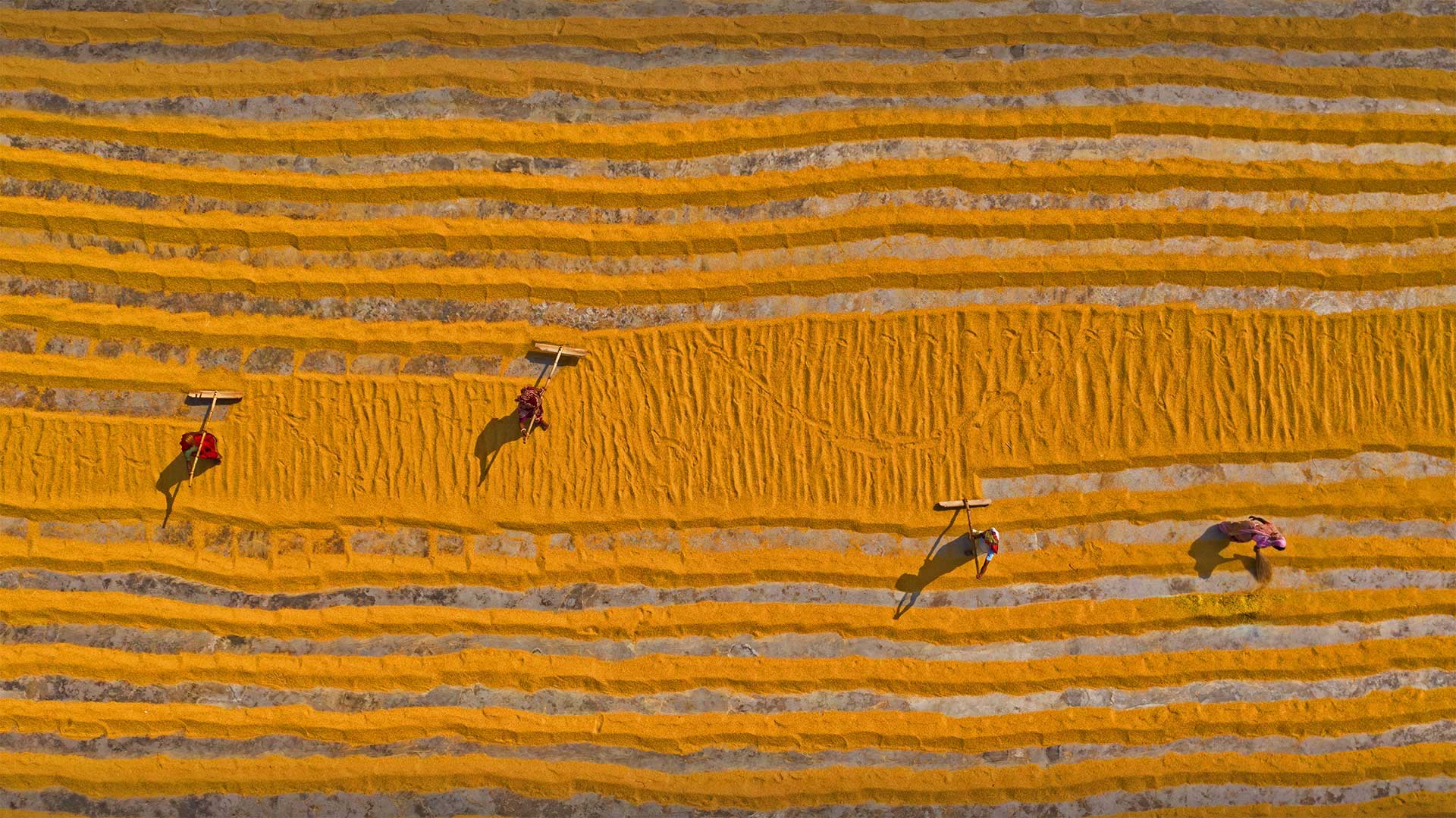 Rice laid out to dry in Dhamrai, Dhaka, Bangladesh (© Amazing Aerial Agency/Offset by Shutterstock)