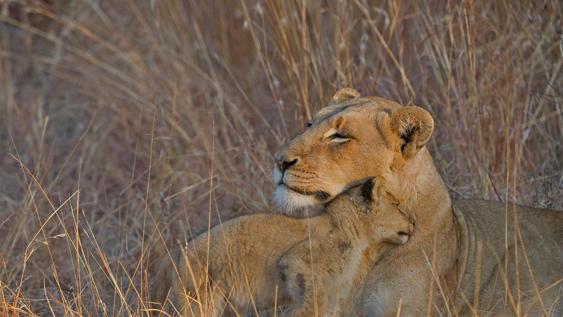 A lion cub and mother in Sabi Sabi Game Reserve, 南非 (© Andrew Coleman/盖蒂图片社)