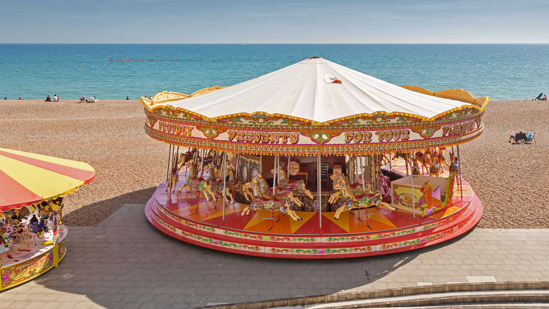 Golden Gallopers Carousel on the seafront in Brighton, East 苏塞克斯, 英格兰 (© Graham Prentice/Alamy)
